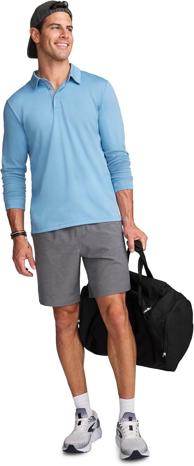 Jockey Men’s Activewear EVERACTIVE Long Sleeve Tech Pique Polo(Slate Heather)