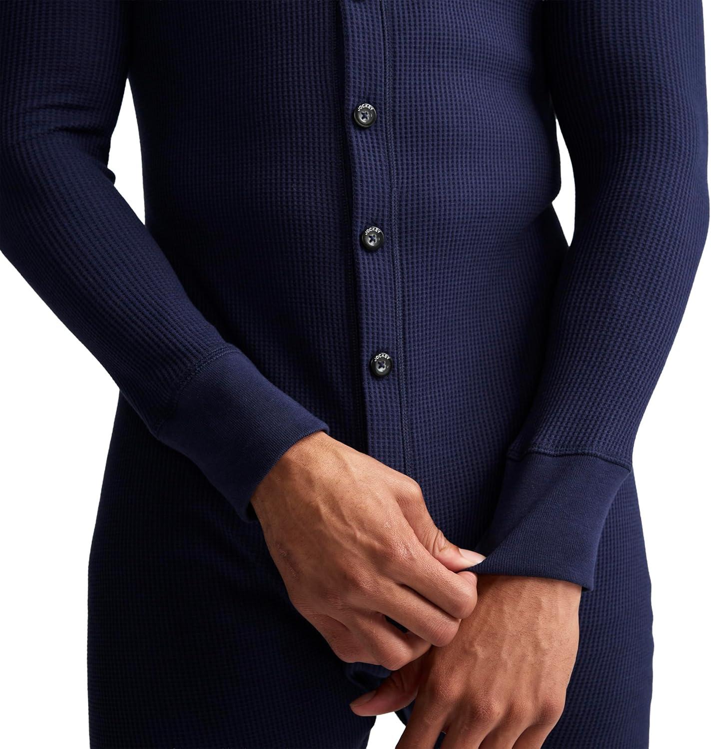 Maybe our ancestors were onto something. The Jockey Men's Waffle Union Suit keeps all the classic touches that have made it the go-to cold weather underwear for generations of outdoorsy and refined men alike. The waffle fabric features a cotton blend for softness and warmth, with the stretch of spandex to help you enjoy a consistently comfortable fit. A full-button front helps make access a little easier, as does the fully-functional 3-button back flap.