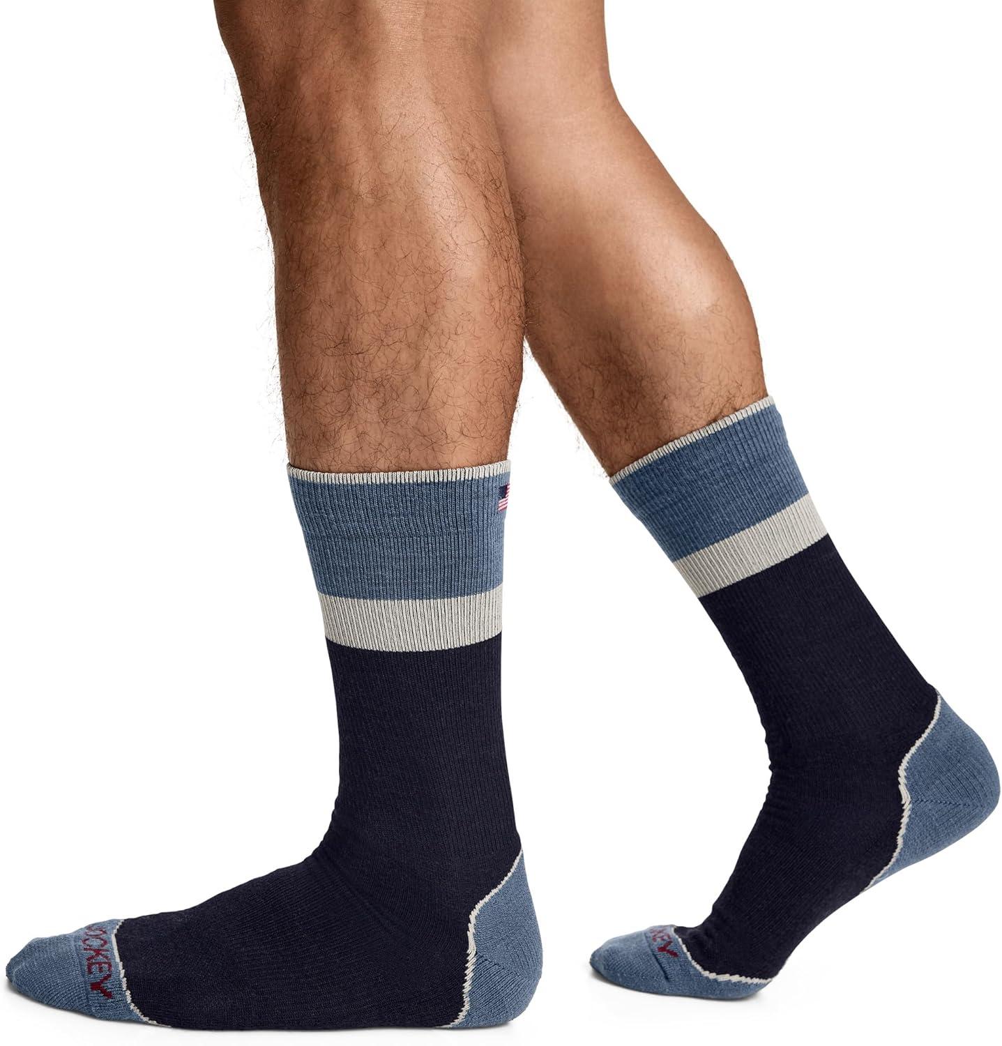 Enjoy comfort and style on your next trek with the Jockey Men’s Made in America* Light Merino Wool Hiking Crew Socks. Moisture-wicking merino and vented panels help keep feet cool, dry and fresh. The compression arch adds support, while cushioned, reinforced heels and toes help insulate and provide extra padding. Smooth toe seams enhance all-day wearability, and the knit-in flag proudly tells the world they’re made in America*. Like all Jockey socks, they have the Jockey No-Hole Guarantee.