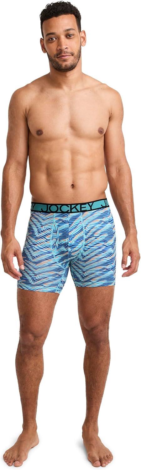 A twist on a comfy favorite, try the Jockey Active Microfiber Boxer Brief. Made with recycled polyester, this lightweight underwear is not only stretchy and smooth, but boasts 90% recycled polyester. This pair features moisture-wicking fabric to help keep you cool and dry while Anti-odor fabric helps fight odor. Plus, it's been enhanced with StayNew technology to keep it looking and feeling new, wash after wash. The keyhole fly adds convenience while the tag-free design offers all-day comfort.