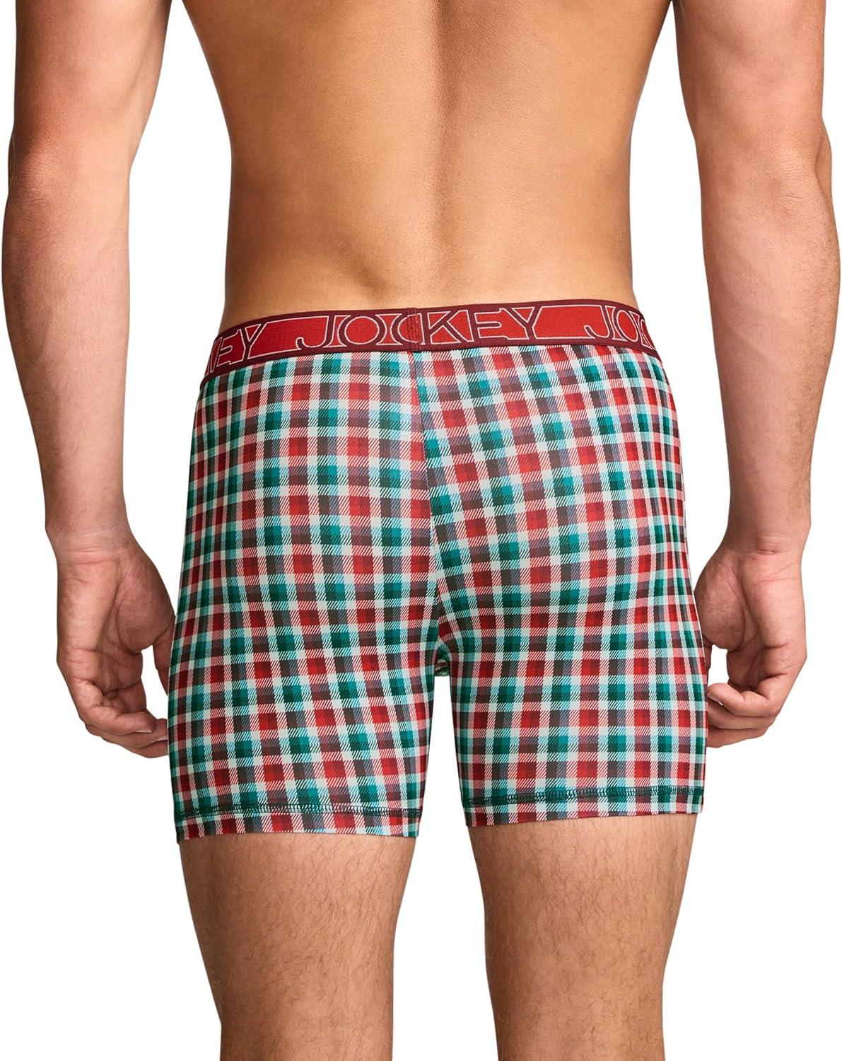 A twist on a comfy favorite, try the Jockey Active Microfiber Boxer Brief. Made with recycled polyester, this lightweight underwear is not only stretchy and smooth, but boasts 90% recycled polyester. This pair features moisture-wicking fabric to help keep you cool and dry while Anti-odor fabric helps fight odor. Plus, it's been enhanced with StayNew technology to keep it looking and feeling new, wash after wash. The keyhole fly adds convenience while the tag-free design offers all-day comfort.