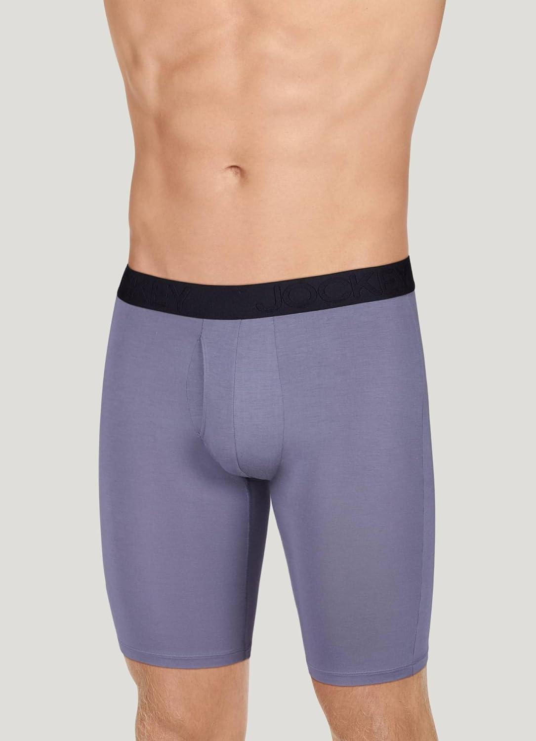 Jockey Men’s Underwear Active Ultra Soft Modal 9″ Long Leg Boxer Brief(Pool Blue)