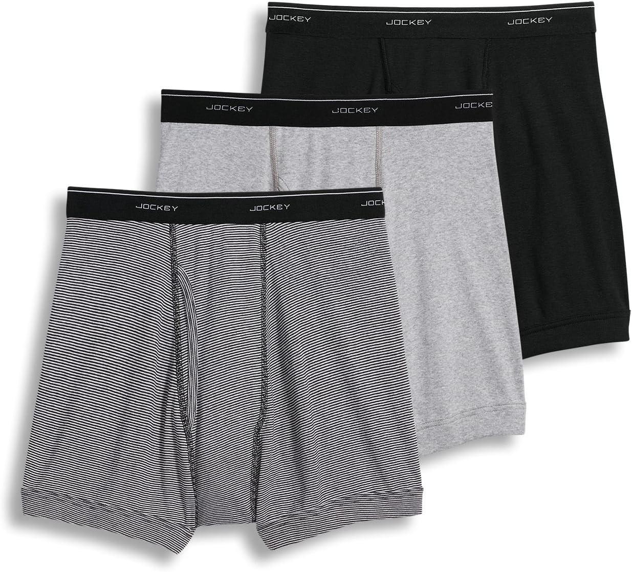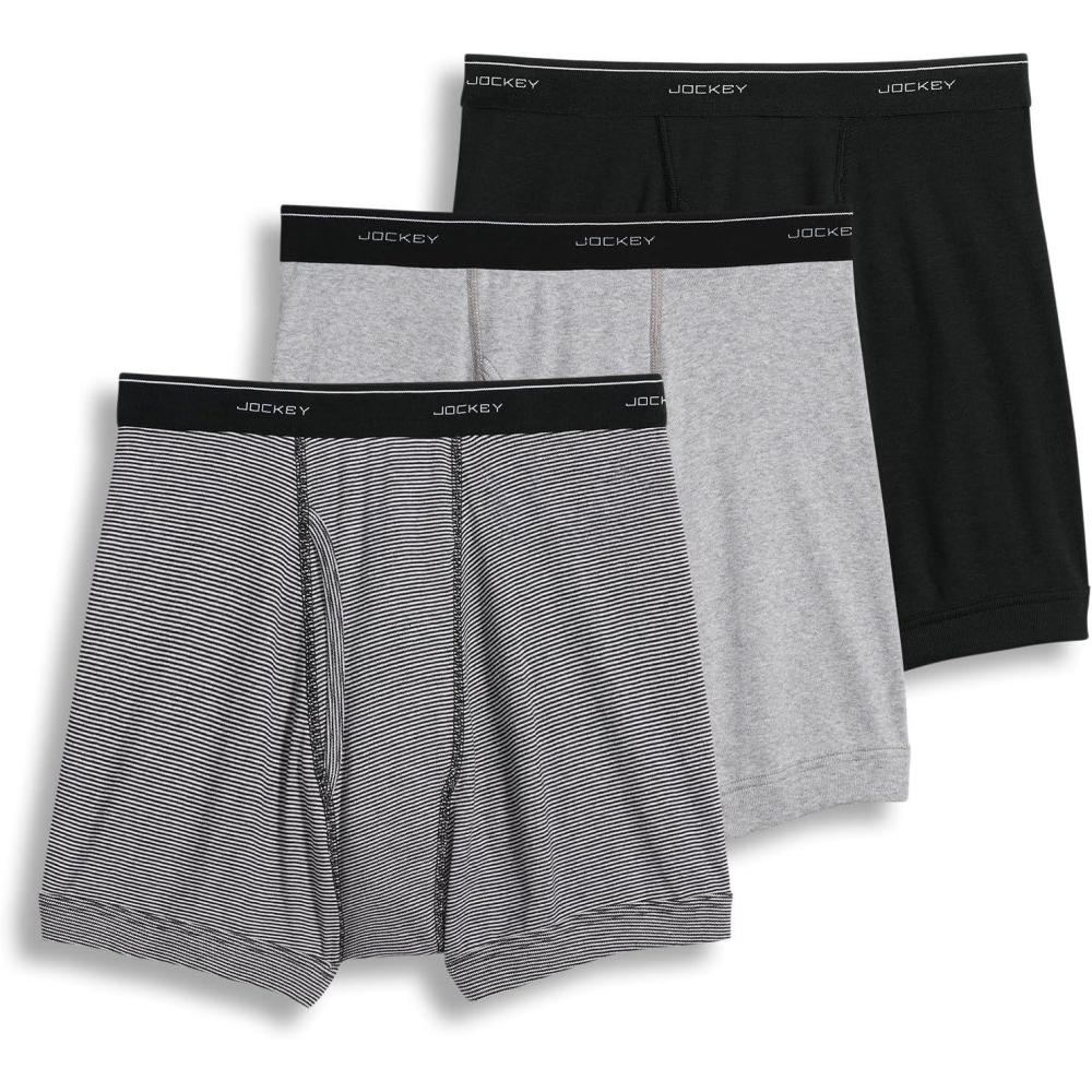 Jockey Men’s Underwear Classic 5″ Boxer Brief – 3 Pack(Black/Black Stripe/Grey Heather)