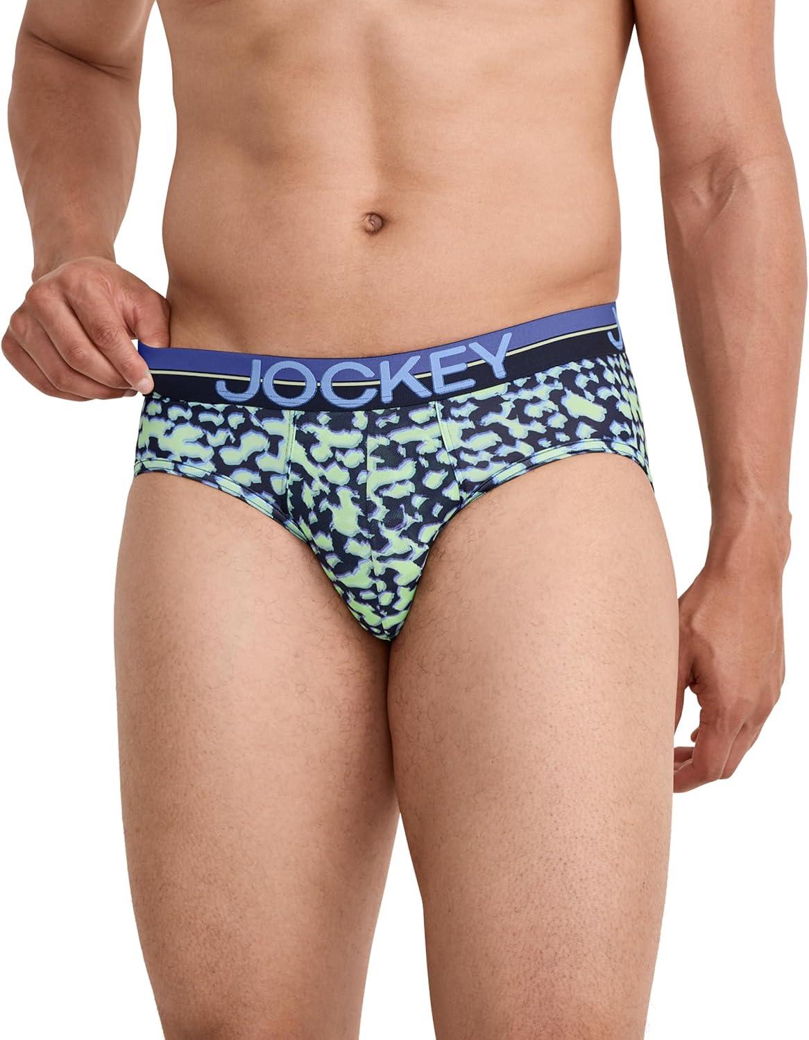 Jockey Men’s Underwear Infinite Cool Microfiber Stretch Brief – 3 Pack(Opaque Geo Blues/Bluest Blue/True Navy)