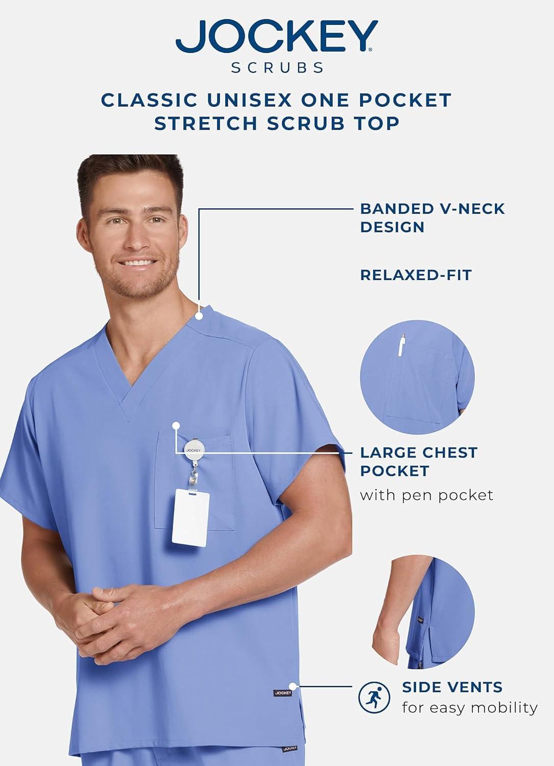 Jockey Unisex Scrubs Classic Unisex One Pocket Stretch Scrub Top(Ceil Blue)