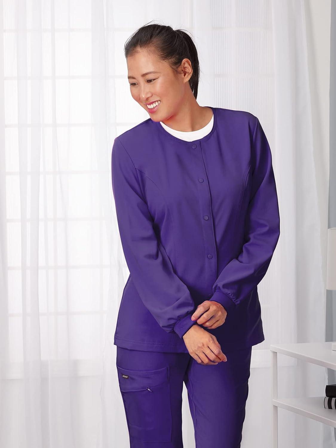 Jockey Women's Scrubs Women's Classic Round Neckline Snap Scrub Jacket(Purple)