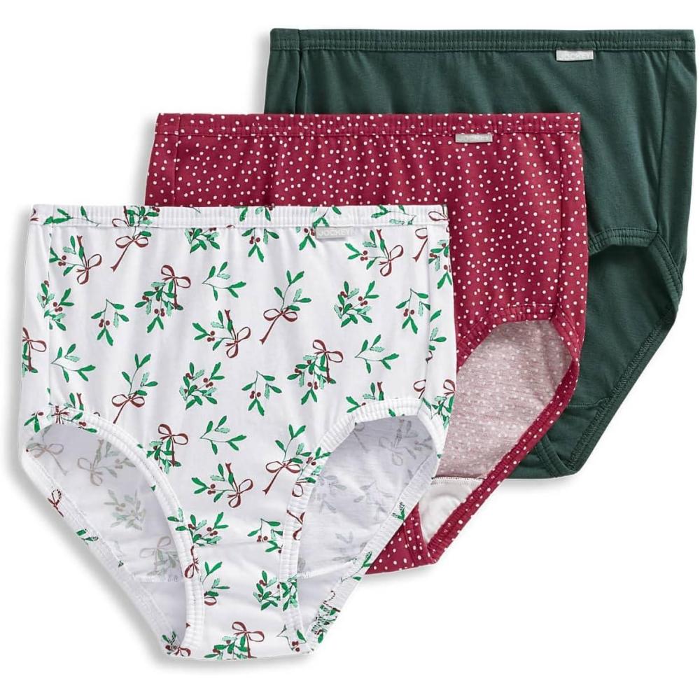 Jockey Women’s Underwear Elance Brief – 3 Pack(Cactus Pine/Small Blizzard Dot/Diamond White Mistletoe)