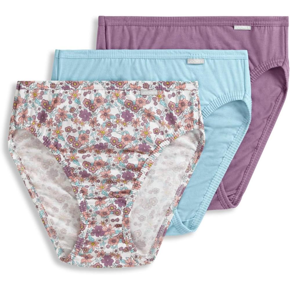 Jockey Women’s Underwear Plus Size Elance French Cut – 3 Pack(Bleached/Elissa Floral/Silver Plum)