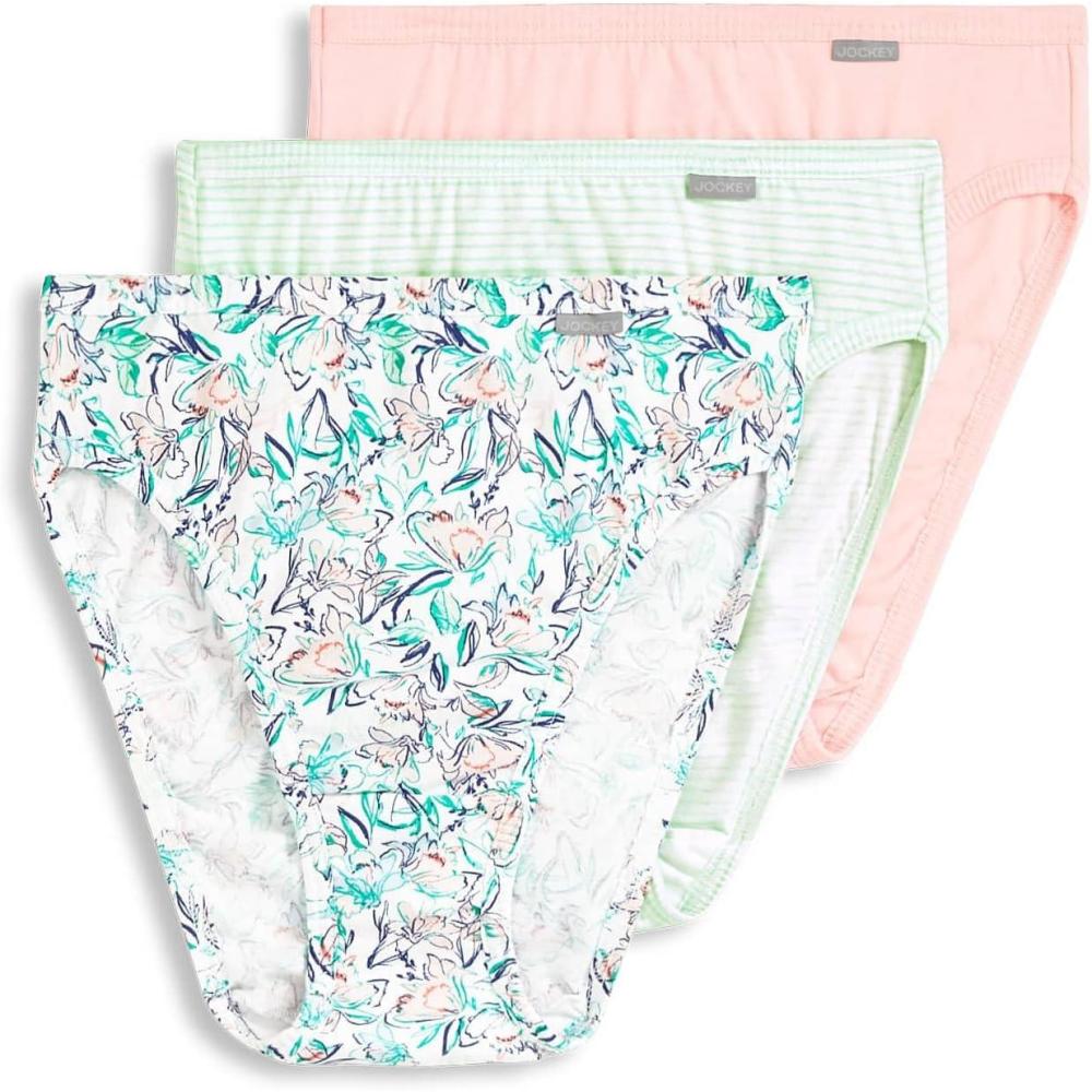 Jockey Women’s Underwear Plus Size Elance French Cut – 3 Pack(Coral Mist/Belvedere Stripe/Small Floral Expression)